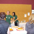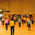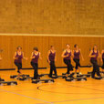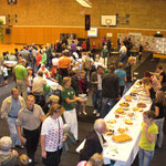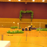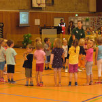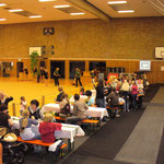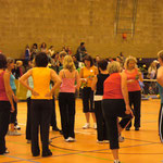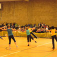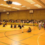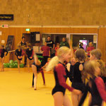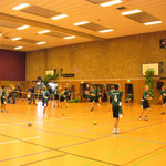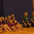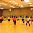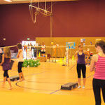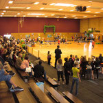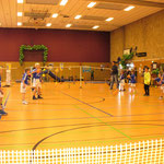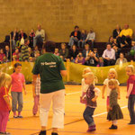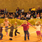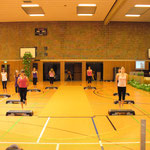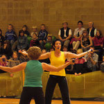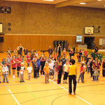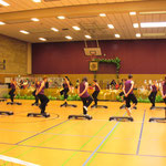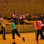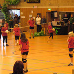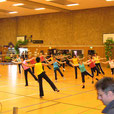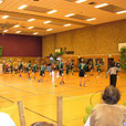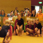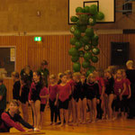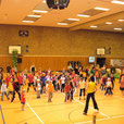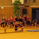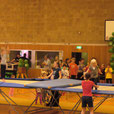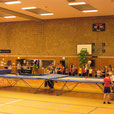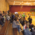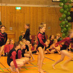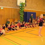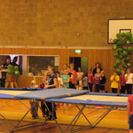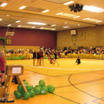 Rund 20 flotte Auftritte legten die Sportler im Schauprogramm hin. Von Turnen und Trampolin über Handball und Aerobic bis zu Badminton und Volleyball reichte die sportliche Bandbreite. Immer wieder gab es Applaus für die kleinen und großen Akteure. Wer wollte, konnte die „Action“ auch von den Cafeteria-Tischen aus verfolgen.