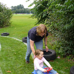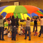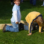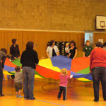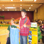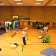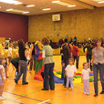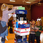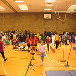 Im Hallenteil gegenüber war der Parcours für die Familiade aufgebaut. Gebucht wurde die „Reise um die Welt“ bei Simone Berlemann. Dann waren Bewegung und Teamgeist gefragt, etwa beim Käserollen in Holland, Skislalom in Österreich oder beim Turmbau in Pisa/Italien. Wer mitmachte, nahm mit seinem abgestempelten Reisedokument an einer Tombola teil. Hier winkten Sachpreise im Wert von rund 700 Euro, gesponsert von Gescheraner Firmen.