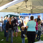 Luftballontrauben in den Vereinsfarben grün-weiß wiesen den Weg zum Geschehen. Fast 300 Kinder und Jugendliche, 100 erwachsene Sportler und weitere 50 Helfer engagierten sich für das Vereinsjubiläum, das der TV mit Unterstützung von Sportmanagerin Angelika Himmelberg auf die Beine gestellt hat. Der TV sei ein Familienverein und wolle sich so präsentieren.