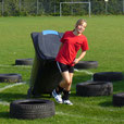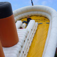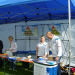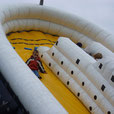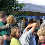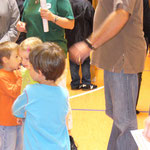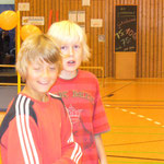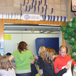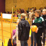 Auch außerhalb der Halle herrschte Samstag Hochbetrieb. Hier lockten der Rutschgigant Titanic, das Torwandschießen und einzelne Stationen der Familiade das Publikum an. Mit dabei waren auch die Jungs der C II vom FSV: „Wir haben beim Spiel gesehen, dass hier was los ist, und machen einfach mal mit“, verriet Joel Vierhaus (13).