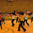 Gescher. Hundertjährige können noch richtig fit sein. Den Beweis lieferte der Turnverein Gescher 1908 e.V.: Mit einem sportlich-fröhlichen Familienfest präsentierte sich der TV am Samstag seinem Publikum und verzeichnete eine durchweg gute Zuschauerresonanz: „Wir schätzen, dass über den Tag verteilt mindestens 2000 Leute hier waren“, strahlte Geschäftsführer Frank ter Duis. Herzstück des TV-Geburtstages war das Schauprogramm der Aktiven, die ihren Verein und seine Sportarten im Zentrum der Dreifachhalle präsentierten. Familiade, Cafeteria, Titanic-Rutsche und Kinderschminken waren weitere Highlights. „Das ist für Kinder und Familien genau richtig“, lobte Zuschauerin Sandra Koslowski das TV-Konzept.