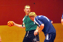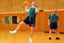 (am.) Es reichte nur für ein paar Minuten. Wer Klaus Merz kennt der weiß, dass es für ihn schlimm ist, wenn er ein Handballspiel seines Teams von der Auswechselbank verfolgen muss. In seinem letzten Match als aktiver Handballspieler verhinderte eine Entzündung im Ellenbogen eine längere Einsatzzeit.