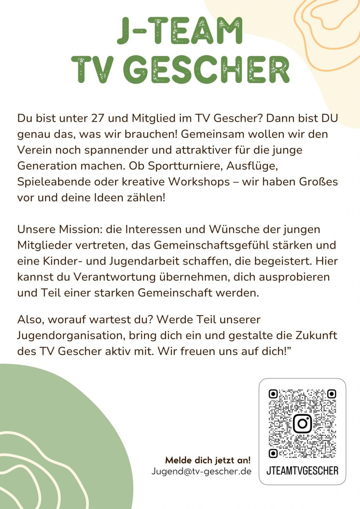 Kontakt per Mail: jugend@tv-gescher.de oder über Instagram @jteamtvgescher