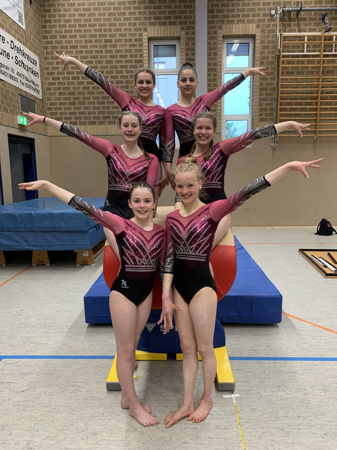 Mit hervorragenden Leistungen am Sprung, Barren und Boden und einem Durchschnittswert von 12,8 Punkten an diesen 3 Geräten war ihnen der 1. Rang sicher. Trotz einiger Patzer am Schwebebalken, die hier zu einem 12,2er Durchschnitt führten, lag die Mannschaft am Ende mit einem Vorsprung von 3,5 Punkten vor der zweitplatzierten Mannschaft der Kunstturnschule (KTS) Mettingen. Am Barren wie auch am Sprung zeigten die Gescheraner die Top3-Einzelleistungen. Die stärkste Barrenübung aller Teilnehmer zeigte Greta Böckmann (12,85) vor ihren Teamkollegen Eva Schnieders (12,70) und Katharina Tenbohlen (12,60). Am Sprung teilten sich Eva Schnieders und Greta Böckmann den 2. Rang mit 12,70. Katharina Tenbohlen zelebrierte erstmals ihren neuen Sprung, gewann nicht nur das Gerät mit 13,05 Punkten sondern darüber hinaus auch die Sympathie aller Zuschauer.