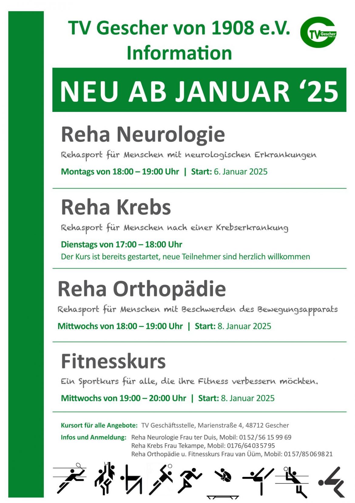 Ich möchte meine Tochter Joana und mich für den Fitnesskurs Mittwochs um 19.00Ihr bei Sandra Van Üüm, anmelden. Ich bin Mitglied des TV Gescher, meine Tochter noch nicht.