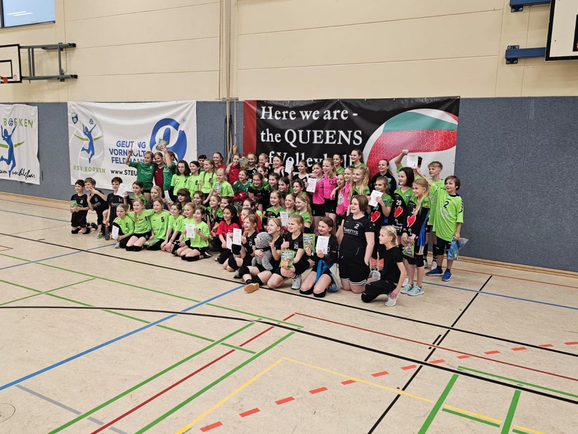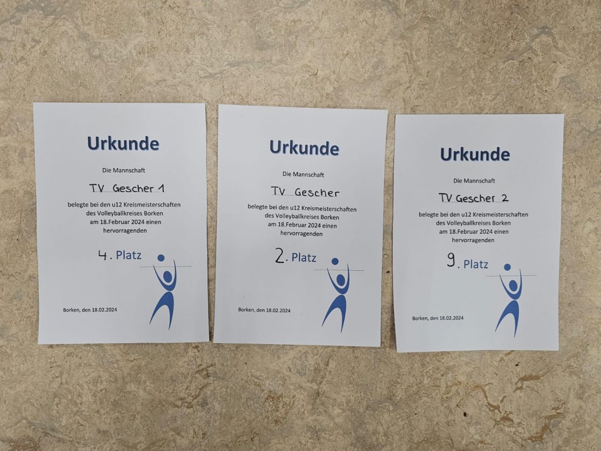 Sonntag war für die Gescheraner Volleyballjugend der U12 und U14 „Spieltach“ angesagt. Für die Youngster der U12 ging es nach Borken-Burlo zu den Kreispokalmeisterschaften. Dort traten zwei Mädchenmannschaften und eine Jungenmannschaft an den Start. Insgesamt trafen 19 Teams aus dem Kreis aufeinander. Es wurde de Kreispokalmeister der Mädchen und der Jungen/mixed ausgespielt. Großartiger Auftakt der Gescheraner Kids mit 2 Gruppensiegen und einem 3. Gruppenplatz. Die Jungen konnten sich im Halbfinale gegen RSV Borken mit 2:0 durchsetzen, mussten sich aber im Finale den erfahreneren Jungen von TuB Bocholt geschlagen geben. Nach 3 Siegen mit 2:0 unterlagen die stark kämpfenden Jungs Joris Fuchs, Chris Vögeding und Florian Terkampe mit 0:2.