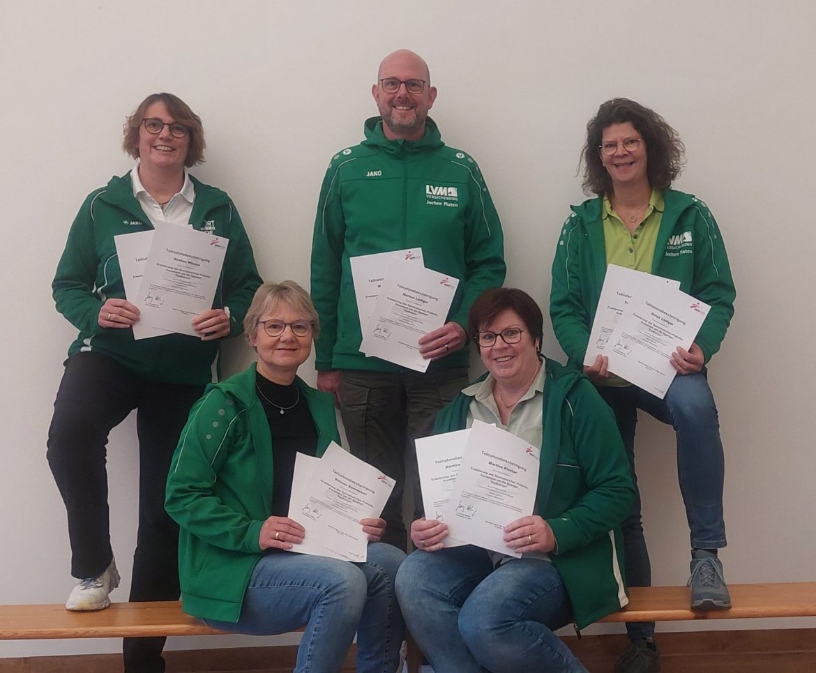 Das Sportabzeichen-Team vom TV Gescher hat sich bereits für die Saison 2025 fit gemacht und aktuell ihre Lizenzen für die Abnahme des Deutschen Sportabzeichens verlängert. Im Bild: v.l Kirsten Wissen, Simone Berlemann, Markus Lüdiger, Martina Kloster und Sonja Lüdiger.