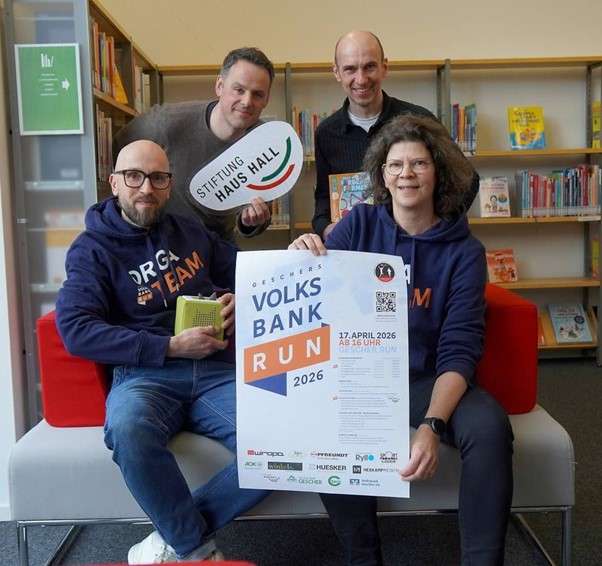 Letztes Jahr gab es Stimmen, die sagten, die fünf Kilometer schrecken sie ein bisschen ab“, sagt Benedikt Niederschmid von der Stiftung Haus Hall. „Der Fun Run ist nicht ausdrücklich für Menschen mit Behinderung, sondern für alle Gescheraner, die Teil dieses Events sein möchten“, betont er. Inklusion heiße nämlich nicht, eine Sonderstellung zu haben, „sondern dass jeder Mensch gleich ist“, fügt Sven Vörding von der Volksbank hinzu. Deshalb entschied man sich auch dazu, mit den Spenden, die vollständig aus der Teilnahmegebühr entstehen, nicht einfach nur die Stiftung Haus Hall zu unterstützen, sondern etwas zu nehmen, das alle betrifft. „So sind wir dann auf die Bücherei gekommen, weil jeder etwas mit Lektüre anfangen kann“, erläutert Vörding.